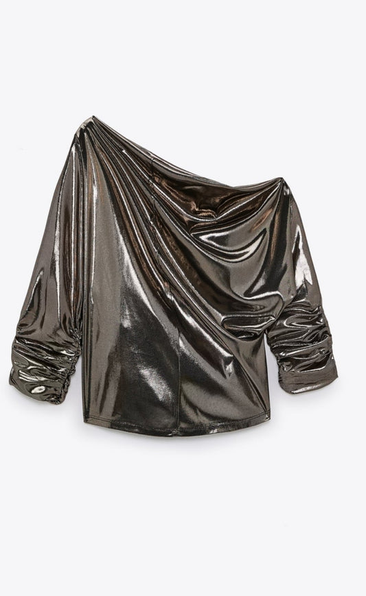 Asymmetric foil look blouse